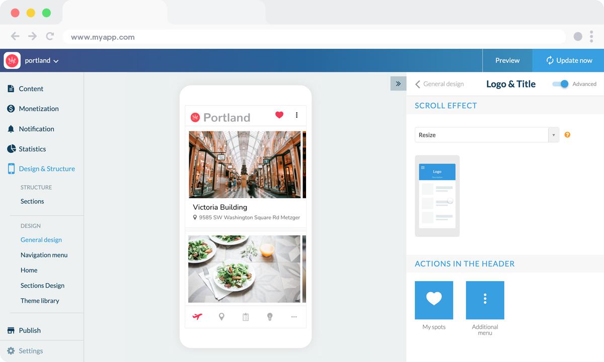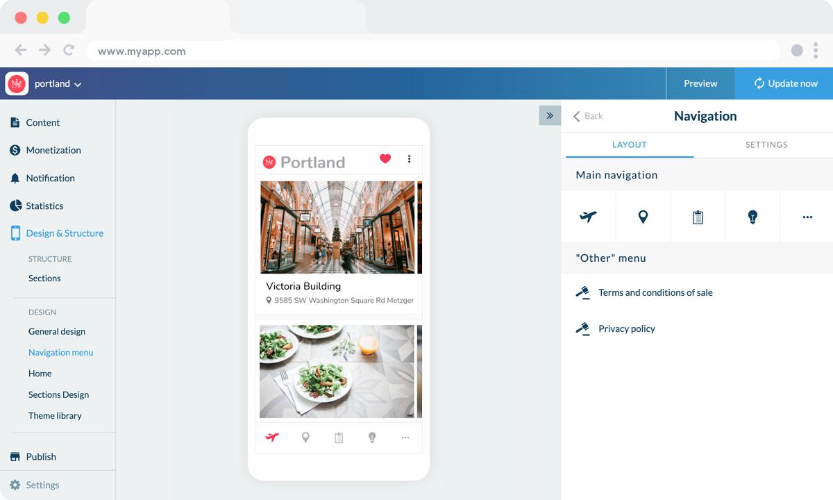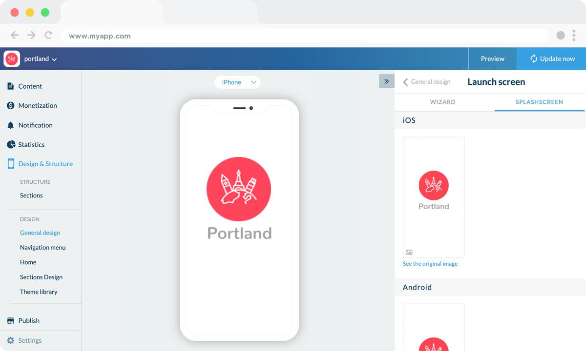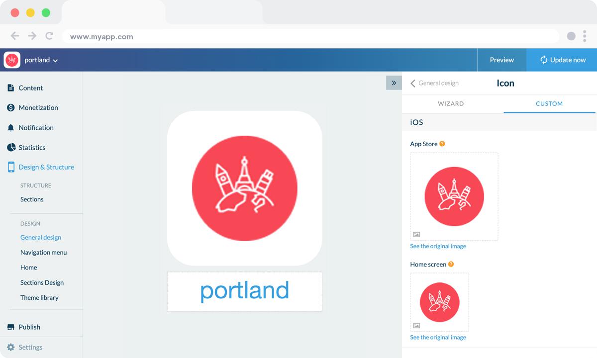 The field that appears below the icon preview is the name of the app as it will appear on the Home Screen of the user's smartphone, for today's example: "Portland".