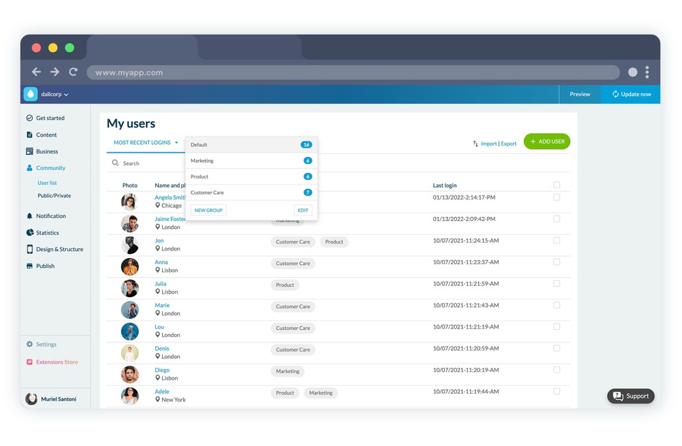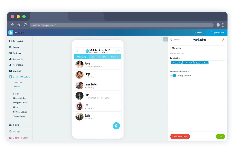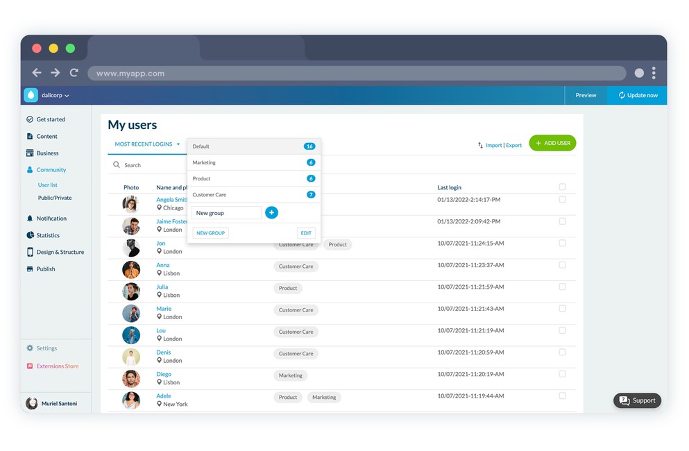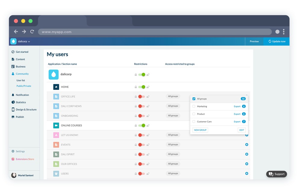 You are free to choose the criteria for defining your groups: age range, interests, sector of activity, location, it's up to you! This way, you can create an app adapted to each of your audiences, by choosing the most coherent content according to the established groups.
