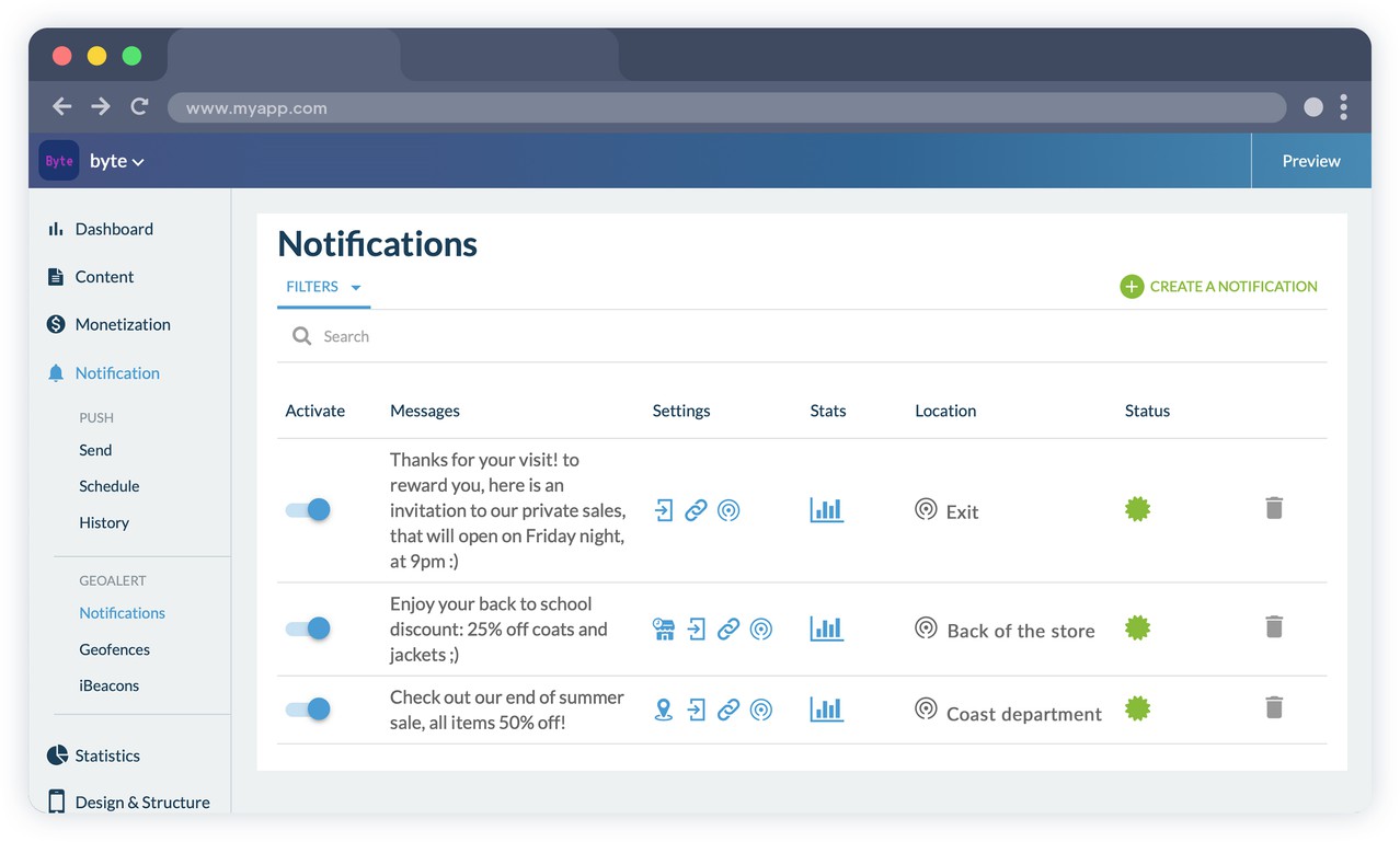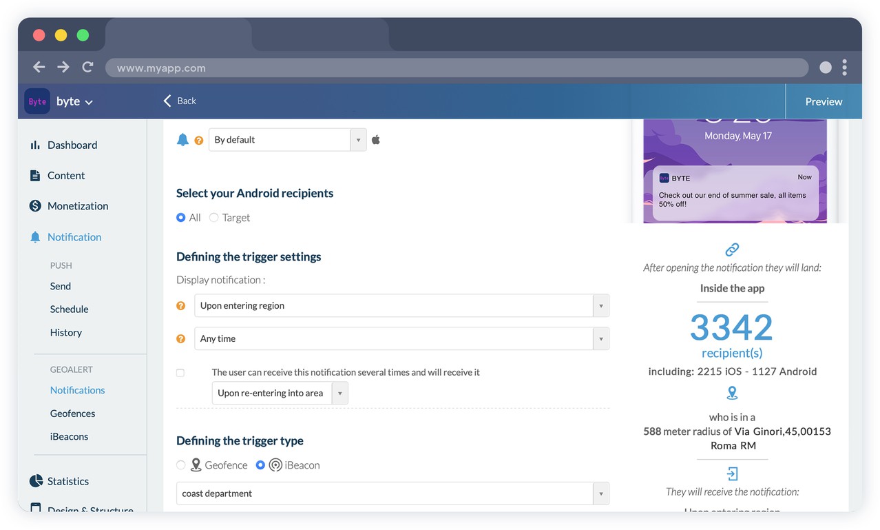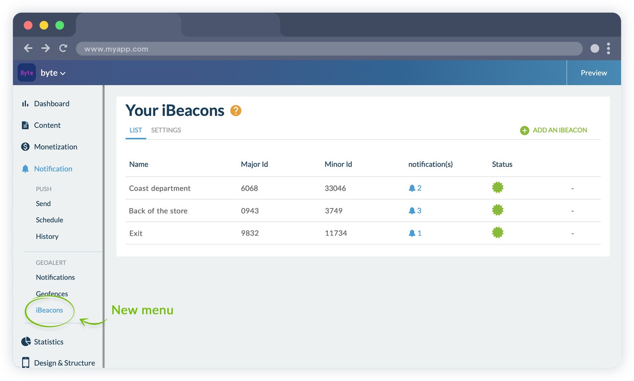 Enable automatic notifications whenever one of your users approaches a Beacon