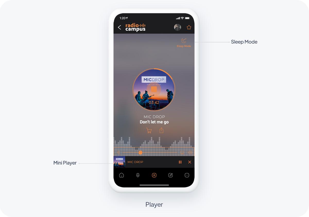 Finally, the sleep mode allows your listeners to choose their listening time using an integrated timer. Once the duration is over, the live broadcasting stops automatically.