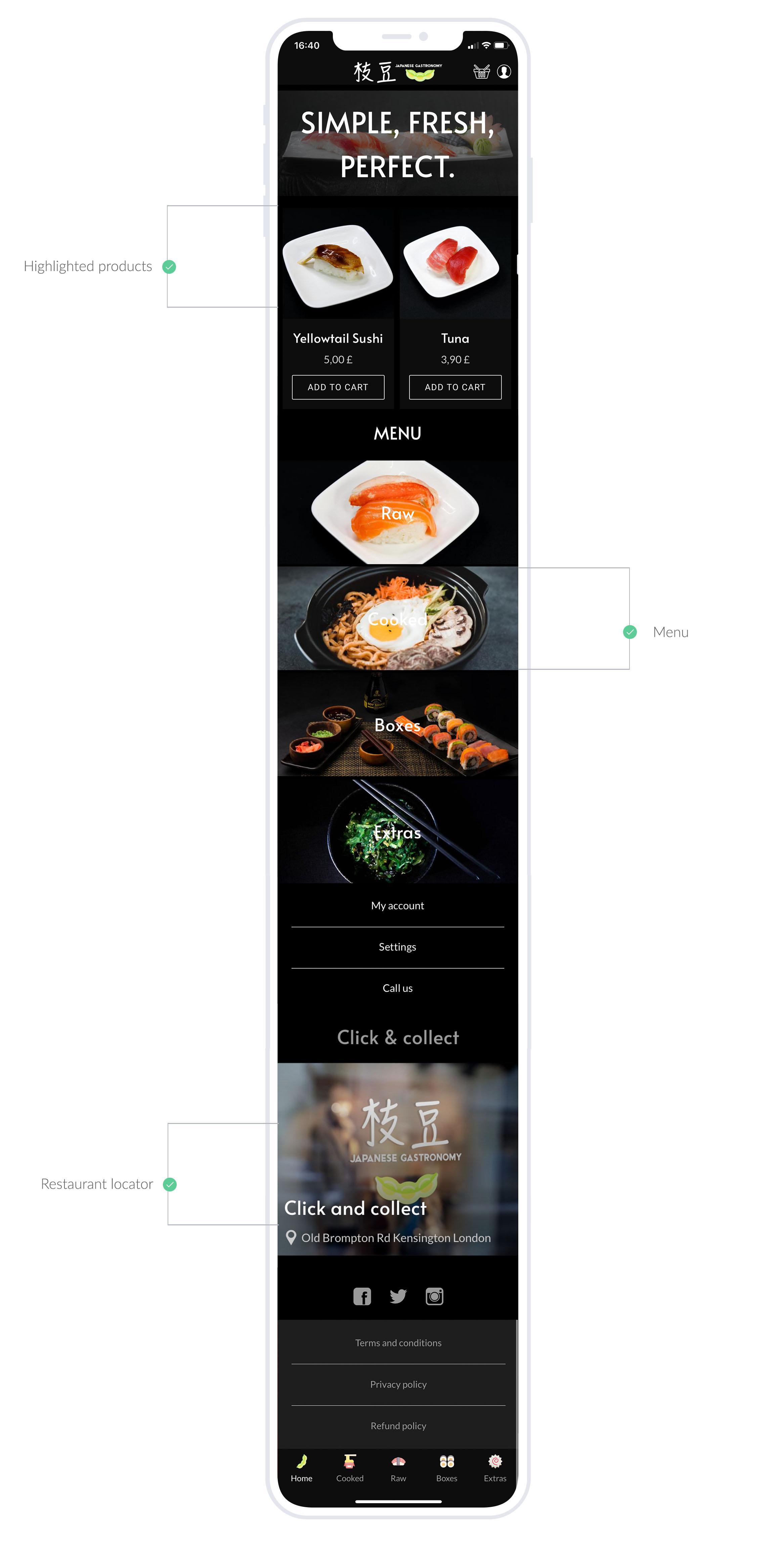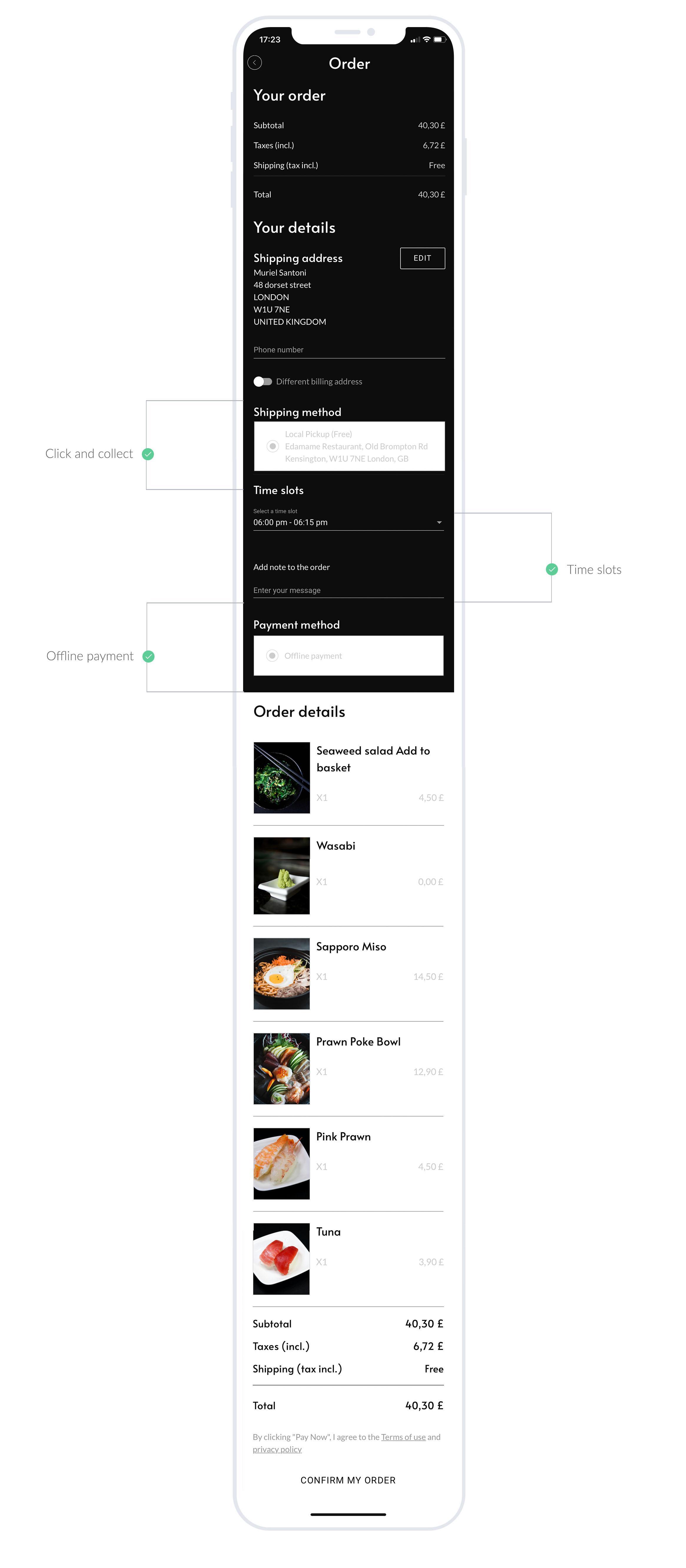 For the payment, it's following the same logic: the owners of the Edamame decided to offer only one payment option: offline payment. Customers validate their order via the app, but they will only pay when they pick it up directly at the shop. No changes in the restaurant's operating habits.