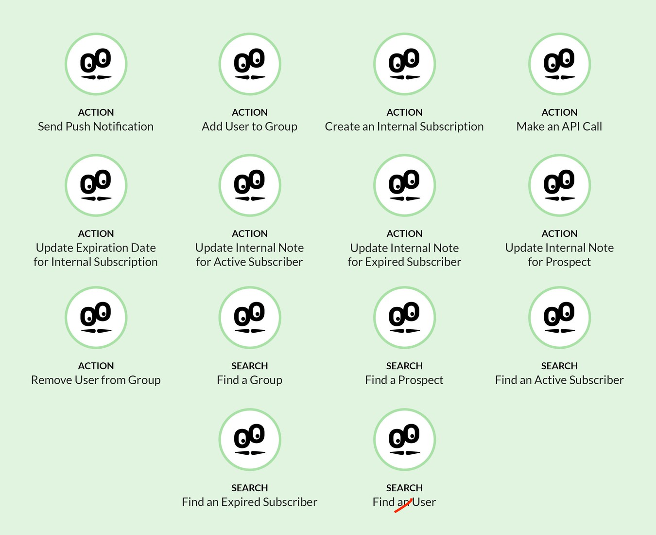 List of GoodBarber actions that can be used in a scenario