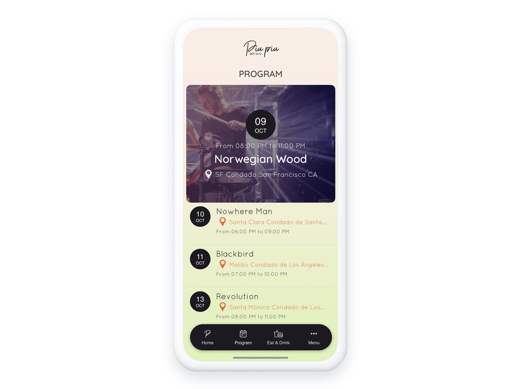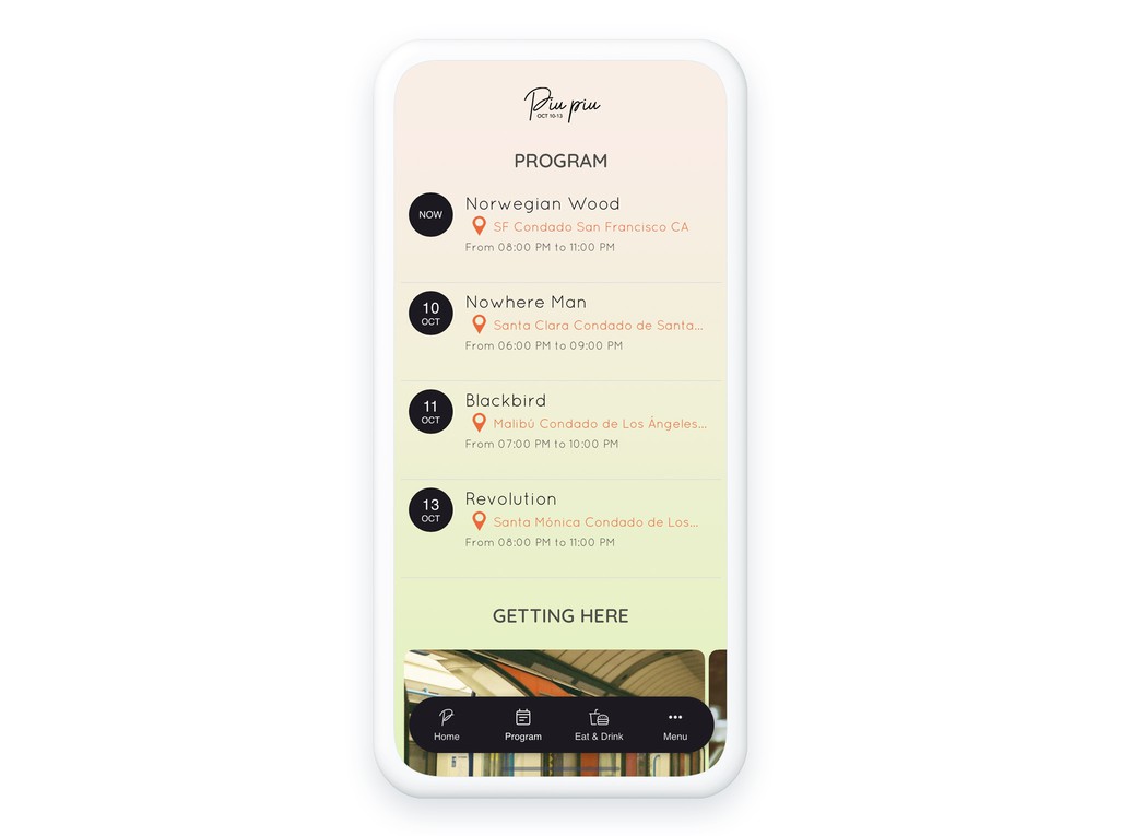 With GoodBarber CMS, you create a clear and structured agenda. Your events are classified by date and you can manage the display of any type of event no matter its duration: you can display several events on the same day, display the mention Now or the departure time when the D-Day has arrived... You can choose among our 7 templates of details or widgets to display your events. They are all based on GoodBarber's Design System which guides our designers in an evolutionary way to ensure visual consistency between your app's pages on different platforms and an optimal user experience.