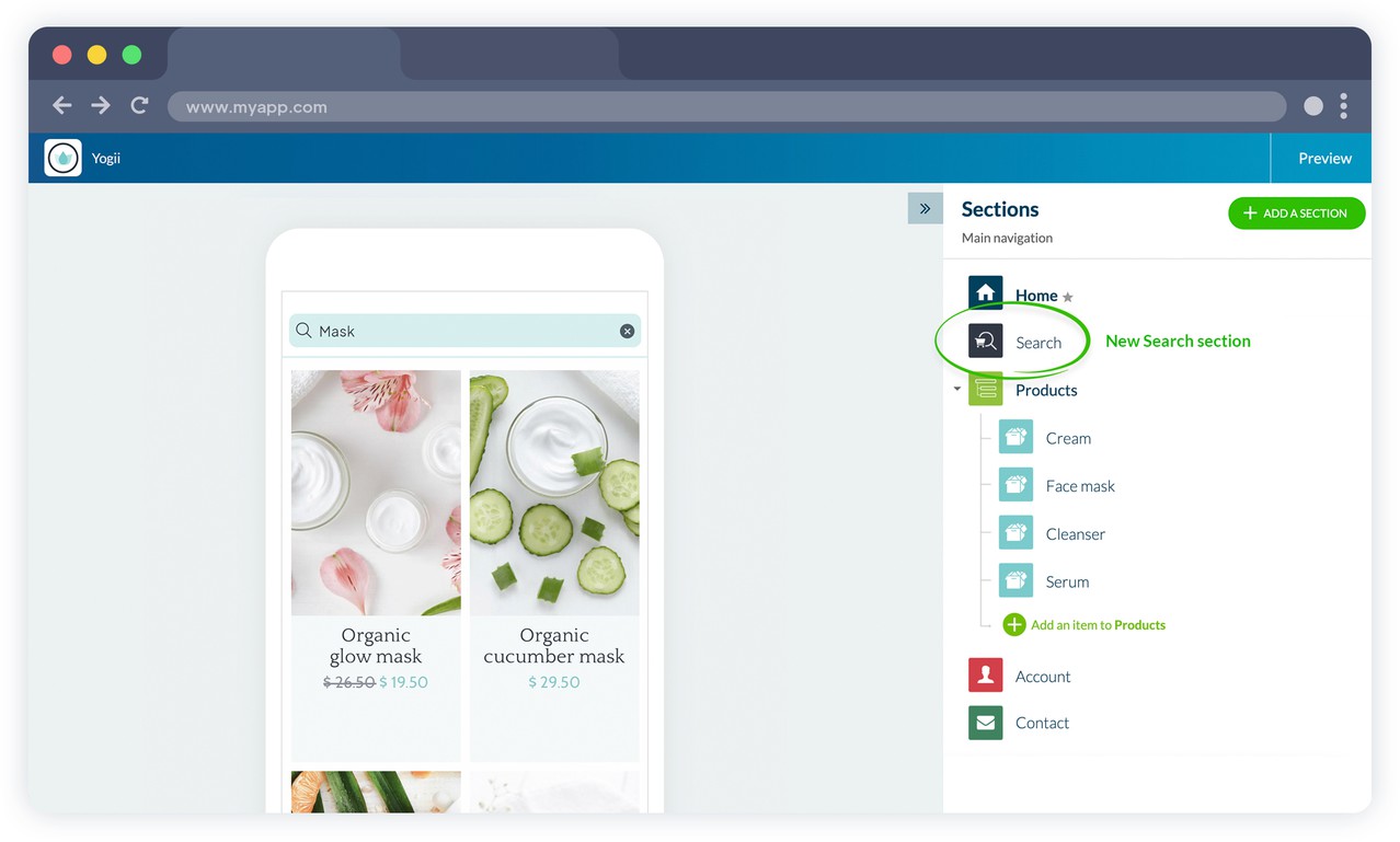 How do I add a search section to my app?