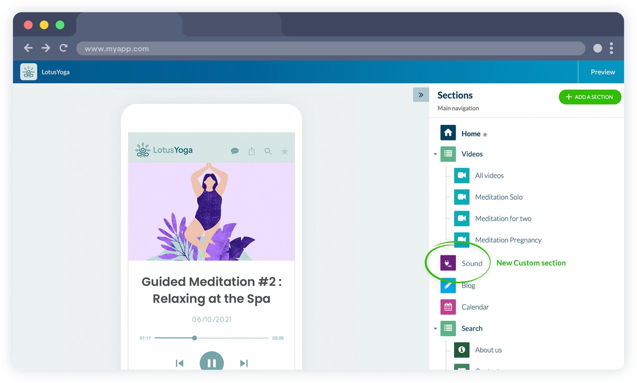 Thanks to GoodBarber's Custom Sound integration, you can sync your external audio files to your app, and automatically play the sounds of your choice with your own custom feed. GoodBarber provides many connectors to broadcast your external content, but the Custom Sound integration makes our platform compatible with all existing services, although it requires a bit of effort on your part. Indeed, if the connector you are looking for is not among our solutions, you will have to create your own custom feed to integrate it into your app. Your audio files will automatically be in your app, accessible at any time by your users, in order to gain more visibility.