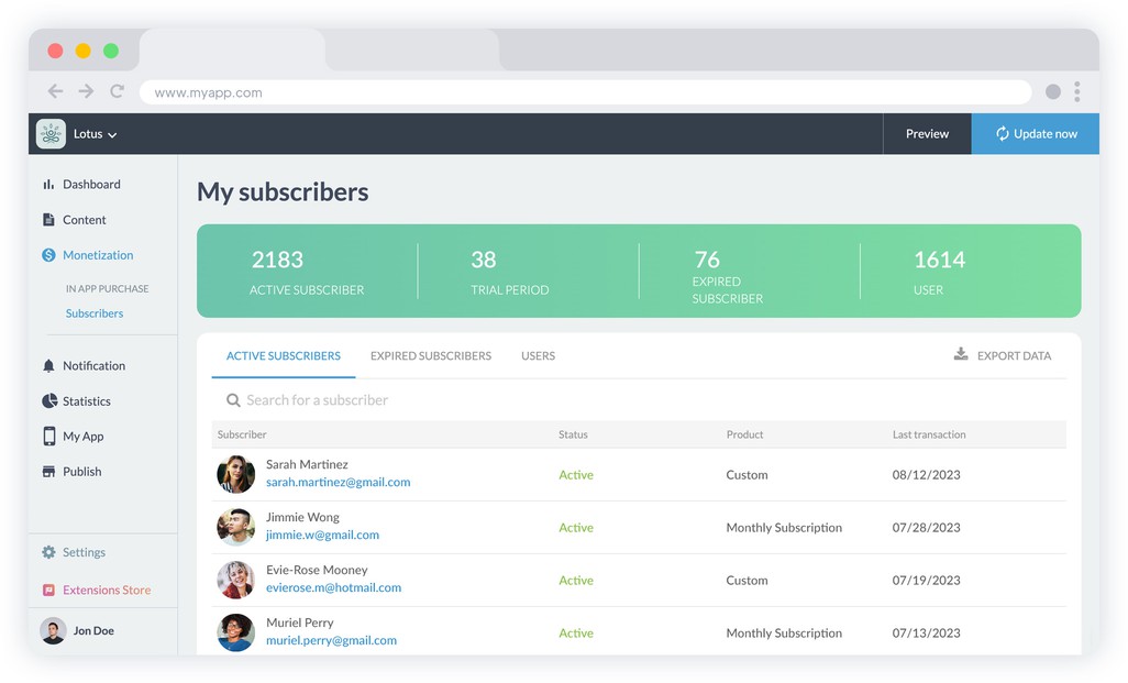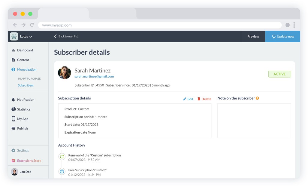 You can also optimize your member base through push notifications. Target the recipients of your notifications based on their subscription status. This allows you to reach both subscribed and non-subscribed users, as well as prospects. You can personalize your communications to meet the needs of each user segment, thereby enhancing user retention, engagement, and the profitability of your app.