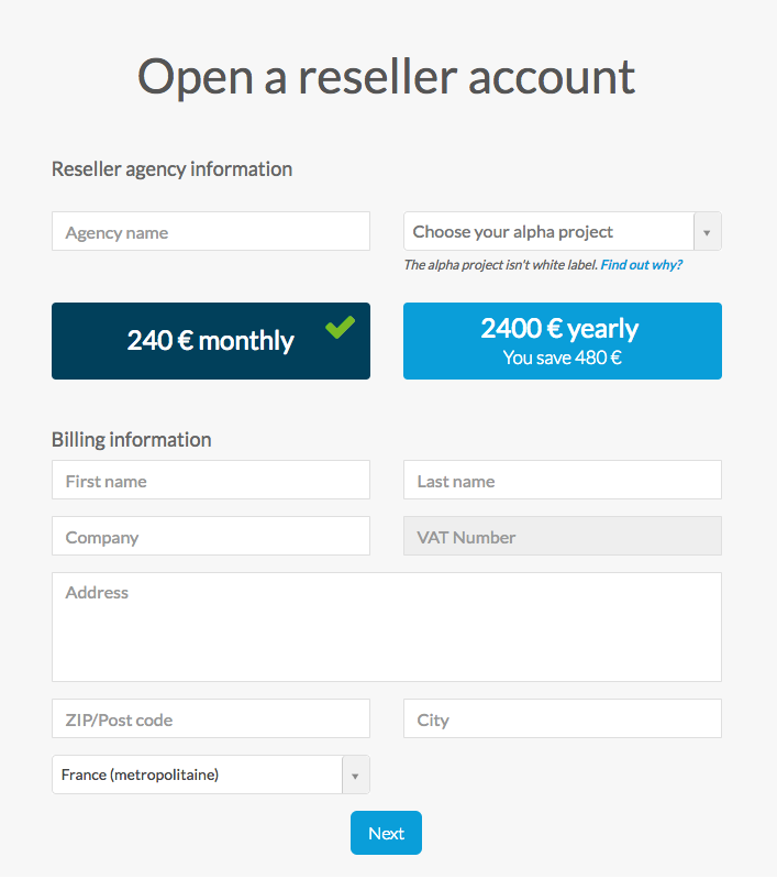Once the form is submitted, your reseller account will be automatically created and you will receive instructions on how to proceed.