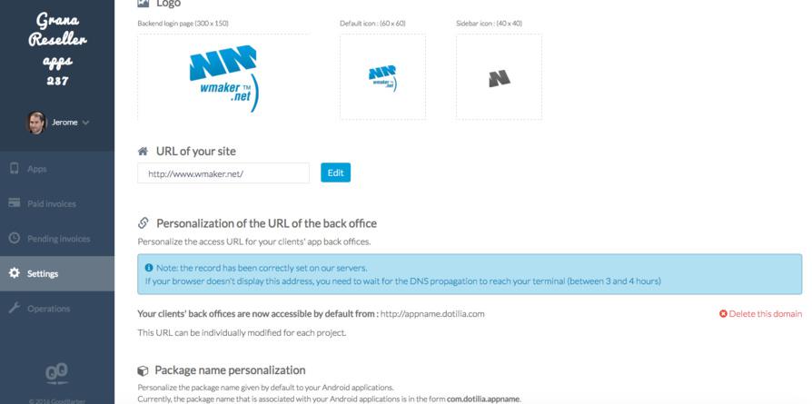 Eliminating "GoodBarber" from the domain name and replacing it with your own is also an option, so that when your client goes to log into their backend, the URL they see will appear something like this : www.appname.agencyname.com