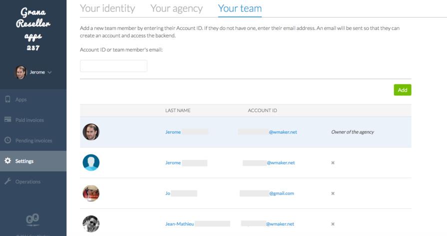 If you'd like to give colleagues access to your reseller dashboard, you can invite as many as you'd like to be collaborators. Please note that the reseller dashboard itself is not white label, so if you give them access to this interface, they will see GoodBarber references.