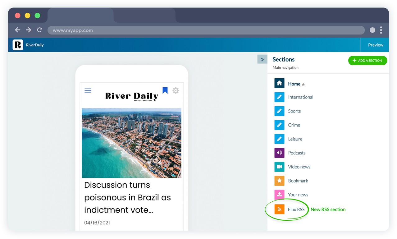 Synchronize your external online content to your app with GoodBarber's RSS feed integration.
