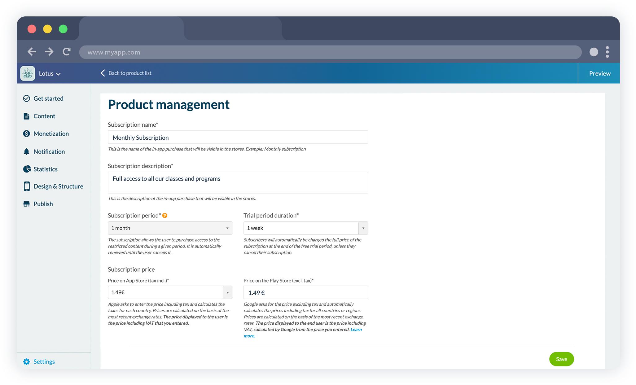 You'll find many advantages to offering memberships in your app. Amongst them, the fact that there is no credit card fee but mainly that for your users, in-app purchase offers a great experience and added value without having to leave the app. No need to enter any card details, everything is linked to their accounts on their respective platforms (iOS or Android).