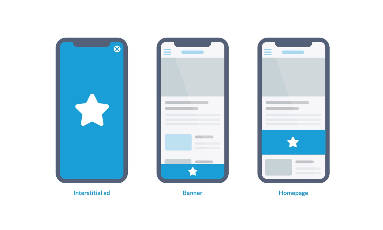 Interstitial ads are shown when clicking an item in a list page of your app, or a content item in a widget on the home page. The banners are offered in the lists of article , videos, photos, sound, and in detail in the associated elements.